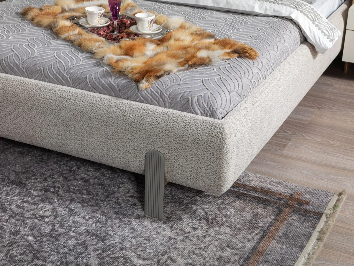 Aspendos yatak odası takımı, gri kumaş kaplı başlık ve LED aydınlatmalı tasarımıyla şık bir yatak odası çözümü sunar. Kaliteli malzemeler ve işçilikle üretilmiştir.