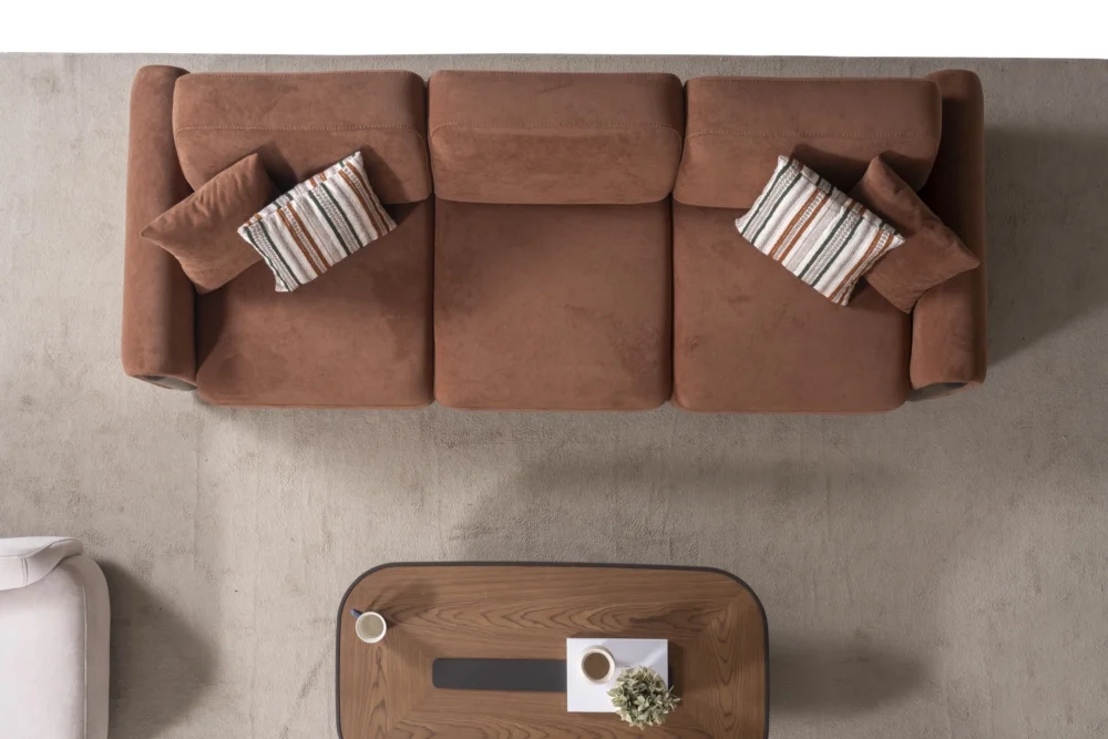 Aura Koltuk Takımının bakımı oldukça kolaydır. Düzenli toz alma ve gerektiğinde nemli bez ile silme işlemi, takımınızın temizliğini korumak için yeterlidir. Yastık kılıflarının çıkarılabilir özelliği, daha detaylı temizlik imkanı tanır. Kaliteli malzeme kullanımı sayesinde yıllar boyunca ilk günkü görünümünü koruyan takım, uzun vadeli bir yatırım niteliği taşır.
