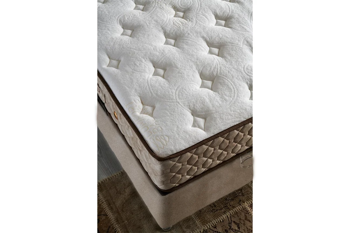 Sade ve zarif görünümüyle her tarz yatak odasına mükemmel uyum sağlayan Comfort Balance, bej ve kahverengi tonlarındaki doğal renk paleti ile hem klasik hem çağdaş dekorasyon anlayışlarını destekler. Kapitoneli yüzey tasarımı görsel bir zenginlik katarken, kaliteli kumaş dokusu uzun süre şeklini ve görünümünü korur. Farklı yatak ölçüleri ile her yatak odası boyutuna uygun seçenekler sunar.