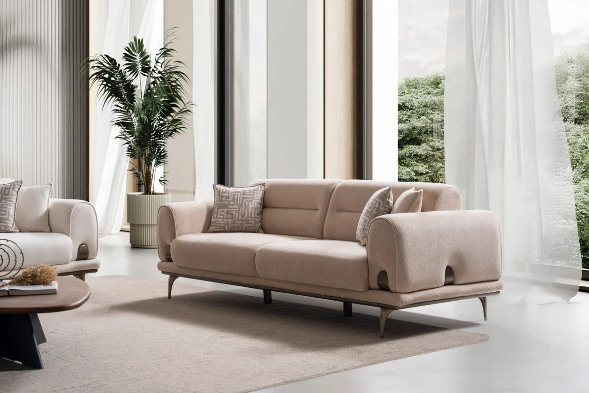 Damla Koltuk Takımı, yaşam alanlarınıza şıklık katmak için özenle tasarlanmış olağanüstü bir mobilya grubudur. Yumuşak hatları ve çağdaş çizgileri ile her türlü iç mekana mükemmel uyum sağlayan bu takım, hem görsel hem de fiziksel konforu bir arada sunar. Açık bej rengi sayesinde mekanlarda ferahlık hissi yaratırken, diğer mobilyalarınızla uyumlu bir bütünlük oluşturur.