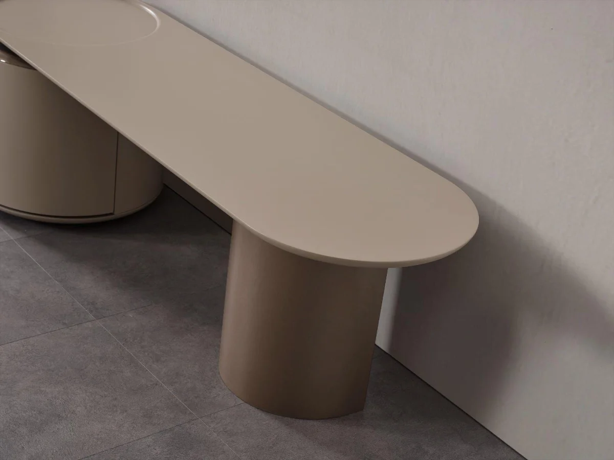Yuvarlak hatları ve akıcı formlarıyla dikkat çeken Ekol TV ünitesi, geleneksel köşeli tasarımların ötesinde modern bir yaklaşım sergiler. Ünitenin oval geometrisi, mekana yumuşaklık katarken, premium kalitedeki malzemeler sayesinde uzun yıllar boyunca dayanıklılığını korur. Mat finish yüzey kaplama, hem şıklık hem de pratiklik sunarken, parmak izi ve leke izlerini minimum seviyede tutar.