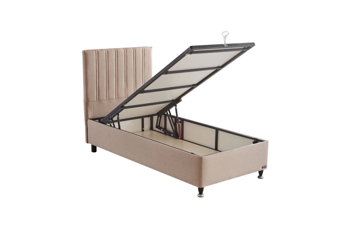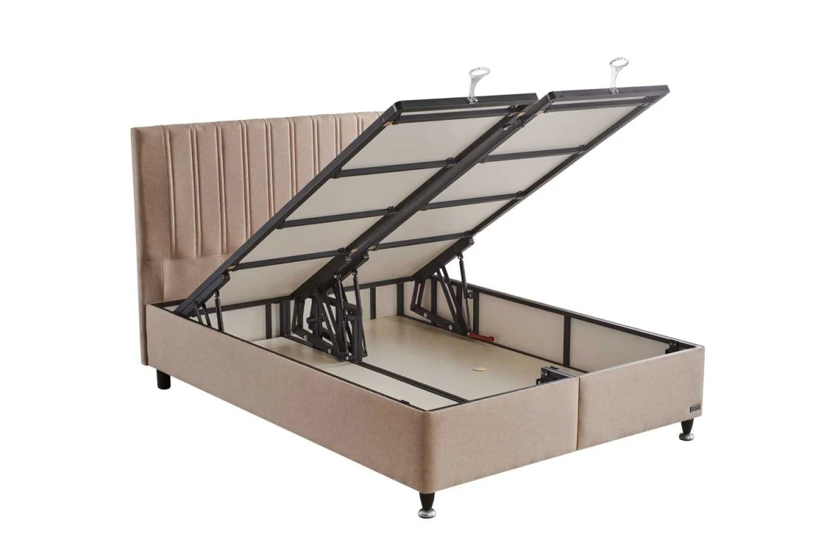 Fornea yatak takımının en dikkat çeken özelliği, dikey çizgili kapitone işçiliği ile hazırlanan başlık kısmıdır. Bu özel tasarım, yatak odanıza hem görsel zenginlik hem de konfor sağlar. Başlığın yumuşak dokusu, yatak başında kitap okuma veya televizyon izleme anlarında rahat bir dayanak sunar. Alt kısmında yer alan sandık bölümü ile ek saklama alanı elde edersiniz.