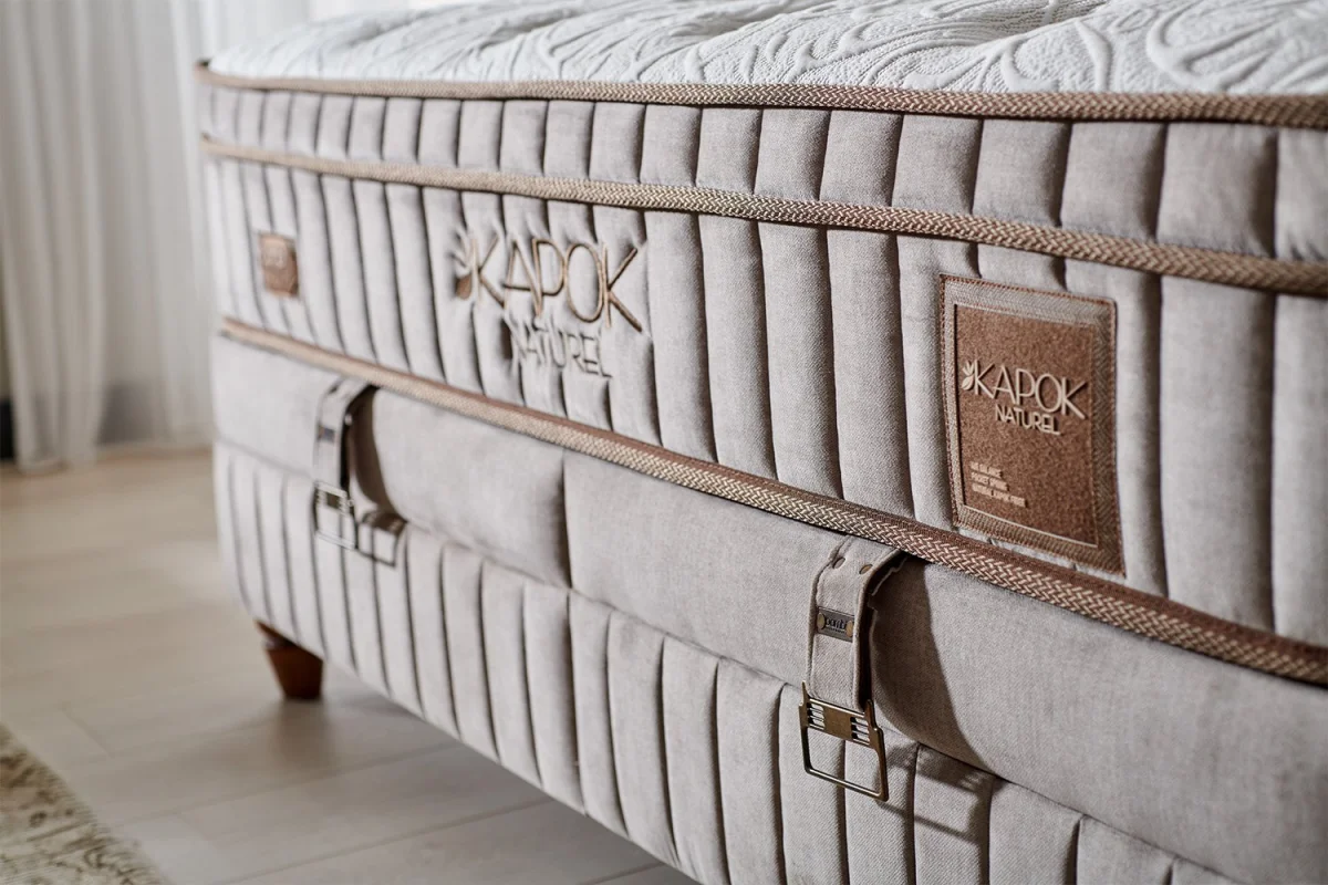 Kapok Naturel yatak takımı, doğal malzemeler ve şık tasarımıyla yatak odanızda konfor ve zarafet sağlar. Kaliteli işçilik ve ergonomik yapısıyla huzurlu uykular sunar.
