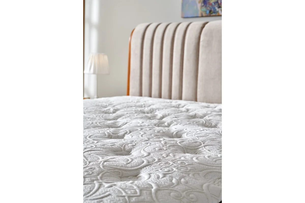 Kapok Naturel yatak takımı, sadece görsel güzellik sunmakla kalmaz, aynı zamanda kullanıcı sağlığını da ön planda tutar. Yatak yüzeyindeki kapitone işçiliği, vücut ağırlığını eşit şekilde dağıtarak omurga sağlığını destekler. Doğal kapok liflerinin esnek yapısı, vücut hatlarına uyum sağlayarak basınç noktalarını rahatlatır. Bu özellik, özellikle bel ve boyun ağrılarından şikayetçi olan kişiler için büyük bir avantaj sağlar. Ayrıca, takımın nefes alabilir yapısı, uyku sırasında hava sirkülasyonunu artırarak daha kaliteli bir dinlenme imkanı sunar.