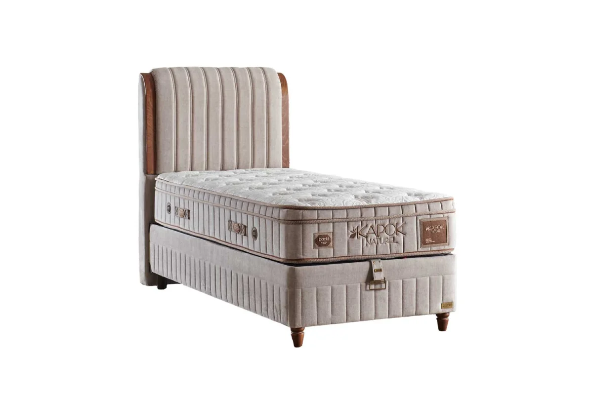 Kapok naturel yatak takımının en önemli özelliği, tropikal kapok ağacından elde edilen doğal liflerin kullanılmasıdır. Bu lifler, pamuktan beş kat daha hafif olmasının yanı sıra, suya dayanıklı ve hava geçirgen yapısıyla tanınır. Kapok lifleri, doğal antibakteriyel özellik göstererek alerji riskini minimize eder ve hassas ciltler için güvenli bir uyku ortamı oluşturur. Aynı zamanda nem emme kapasitesi yüksek olan bu lifler, gece boyunca vücut ısısını dengeler ve terlemeden kaynaklanan rahatsızlıkları önler.