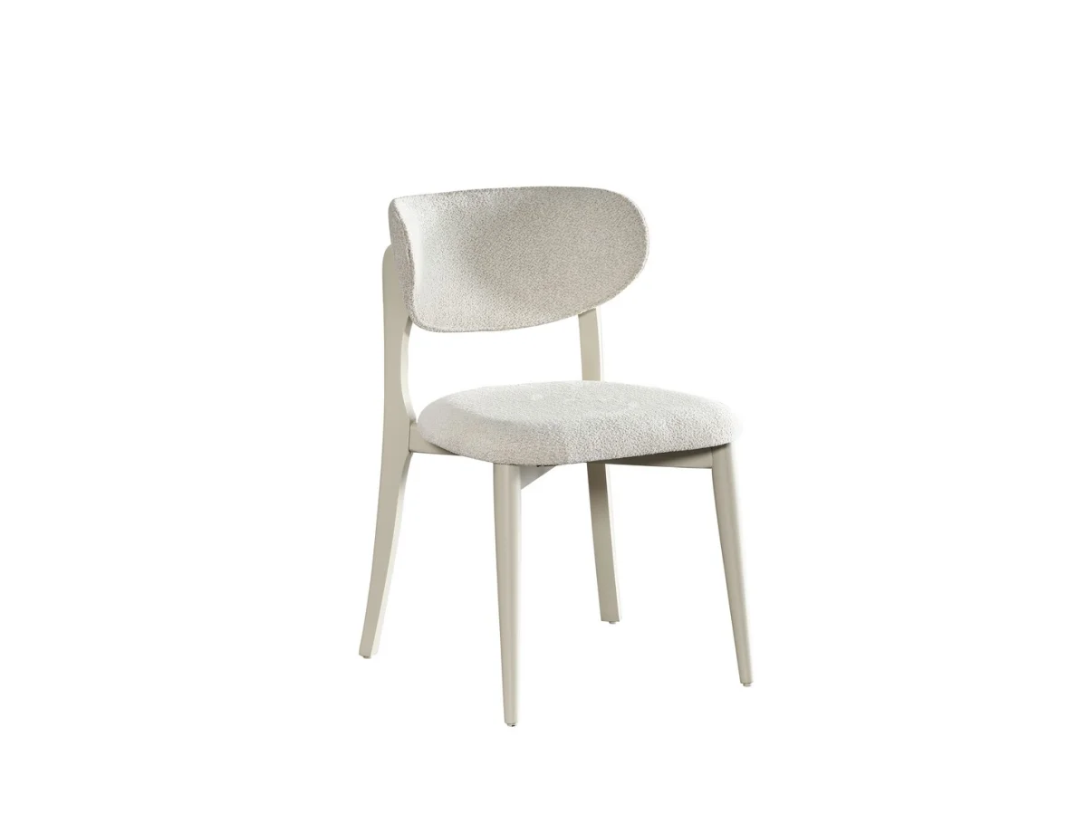 Lizbon yemek odası sandalyeleri, krem rengi dokulu kumaş döşemesi ile dikkat çeker. Sandalyelerin arkalığında ve oturma yüzeyinde kullanılan kaliteli kumaş, uzun süreli oturma konforunu garanti eder. Ahşap bacaklar, doğal ahşap rengiyle masayla mükemmel uyum sağlar. Sandalyelerin ergonomik tasarımı, sırt ve bel desteği sunarken, zarif görünümü de korur. Her sandalye, günlük kullanımın yoğunluğuna dayanacak şekilde titizlikle üretilmiştir.