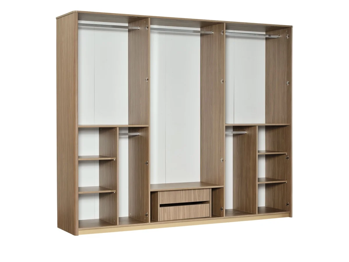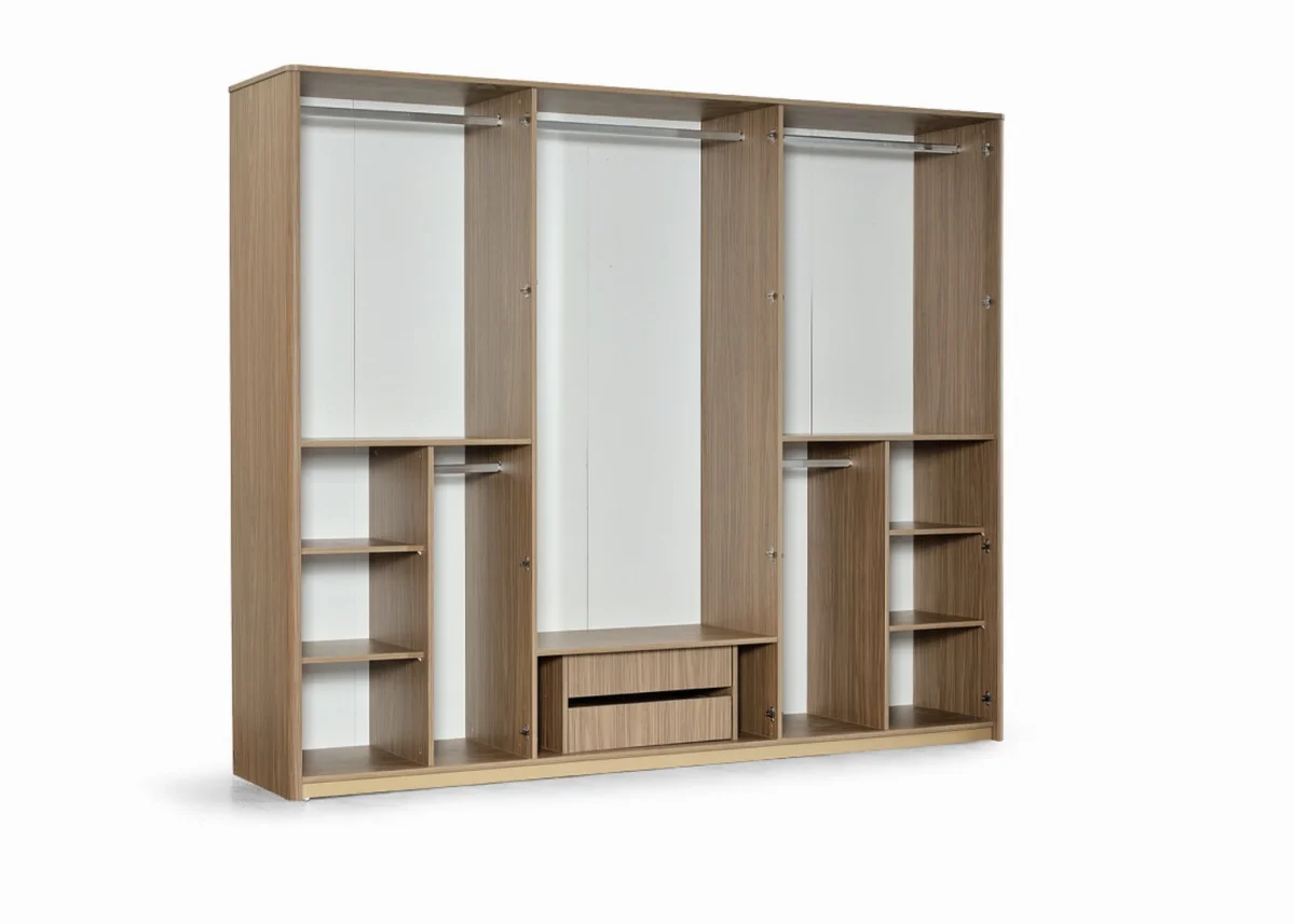 Yatak odanızın düzenli kalması için Madrid takımı, çok sayıda depolama seçeneği sunar. Geniş dolap, ayna detaylı kapakları ile hem işlevsel hem de estetiktir. Şifonyer ve komodin, günlük kullanım eşyalarınız için yeterli alan sağlar. Özellikle çekmecelerin kırmızı iç düzenleyicileri, eşyalarınızı kategorilere ayırmanıza yardımcı olur ve organize bir yaşam tarzını destekler.