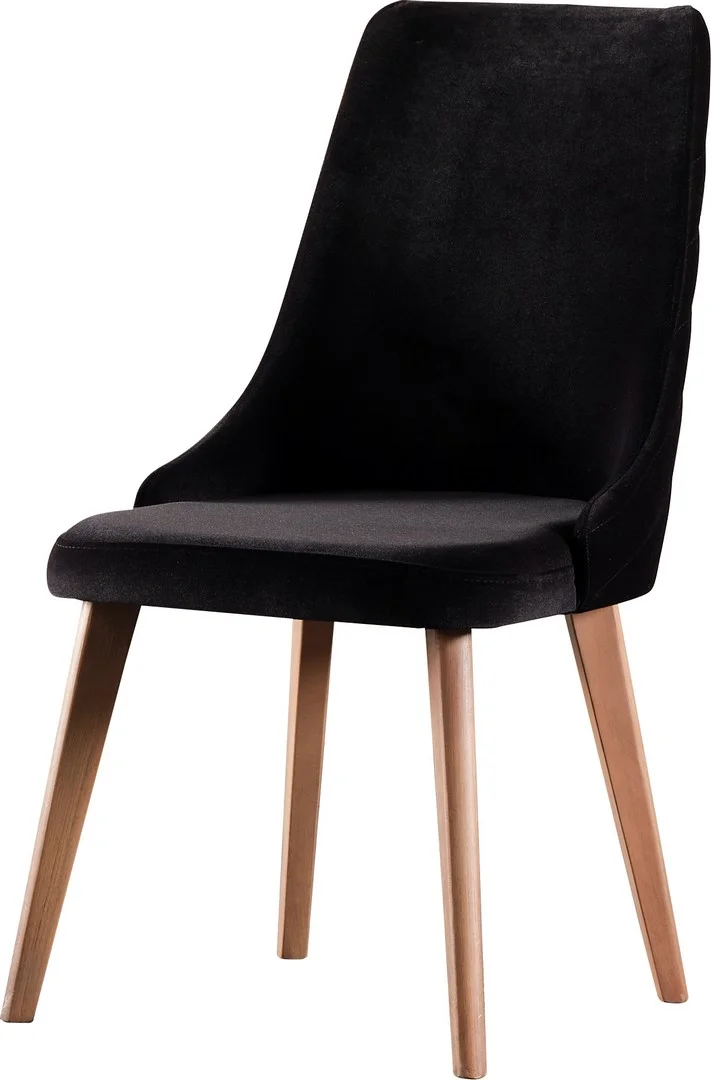 Milano takımıyla birlikte gelen siyah döşemeli sandalyeler, konfor ve zarafeti birleştirir. Ahşap ayakları masa ile uyum içindedir ve sağlam yapısı uzun süreli oturmada rahatlık sağlar. Sandalyelerin ergonomik tasarımı, sırt ve bel desteği sunarken, döşeme kalitesi yıllarca şeklini korur. Siyah renk seçimi, beyaz masayla çarpıcı bir kontrast oluşturur ve mekana karakter katar.