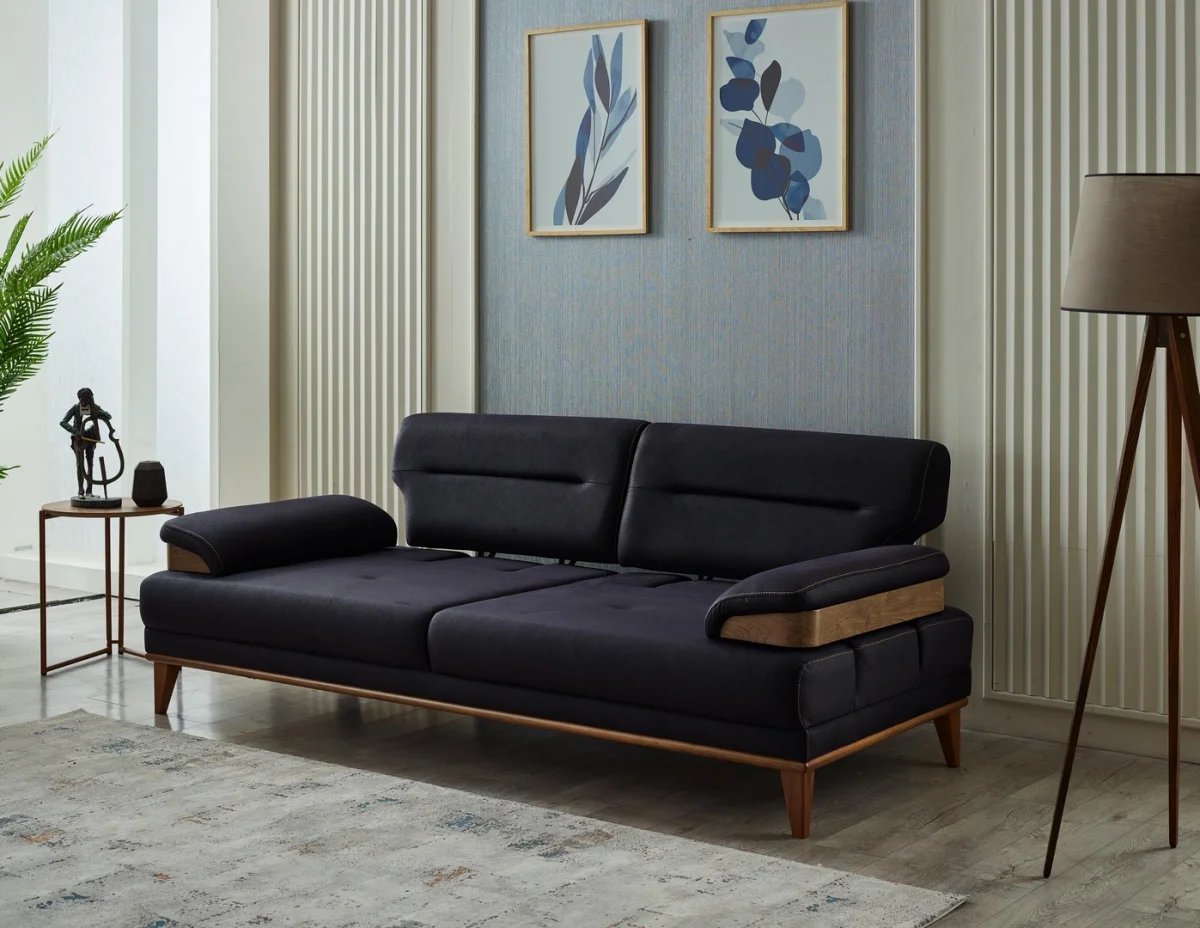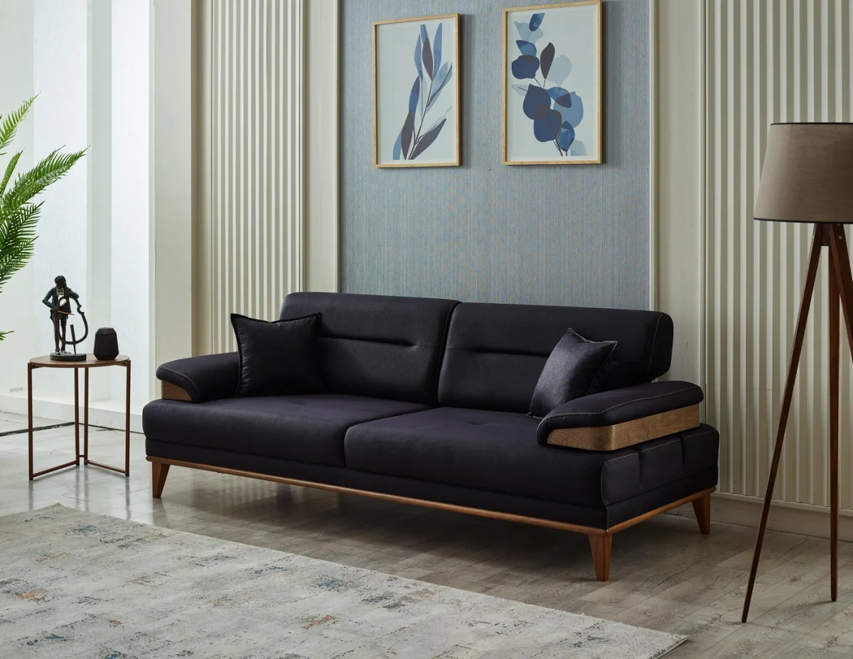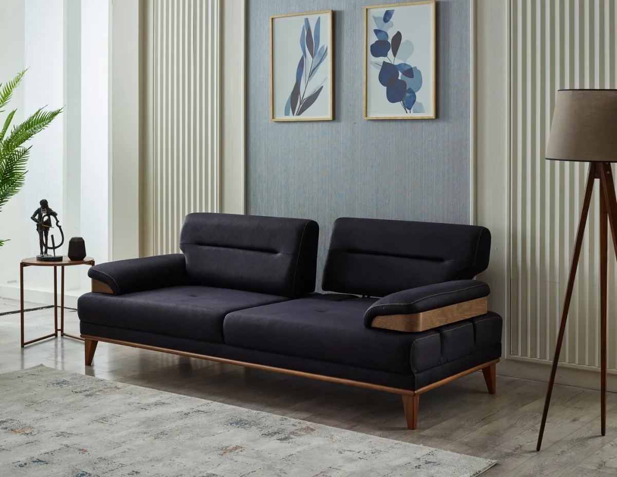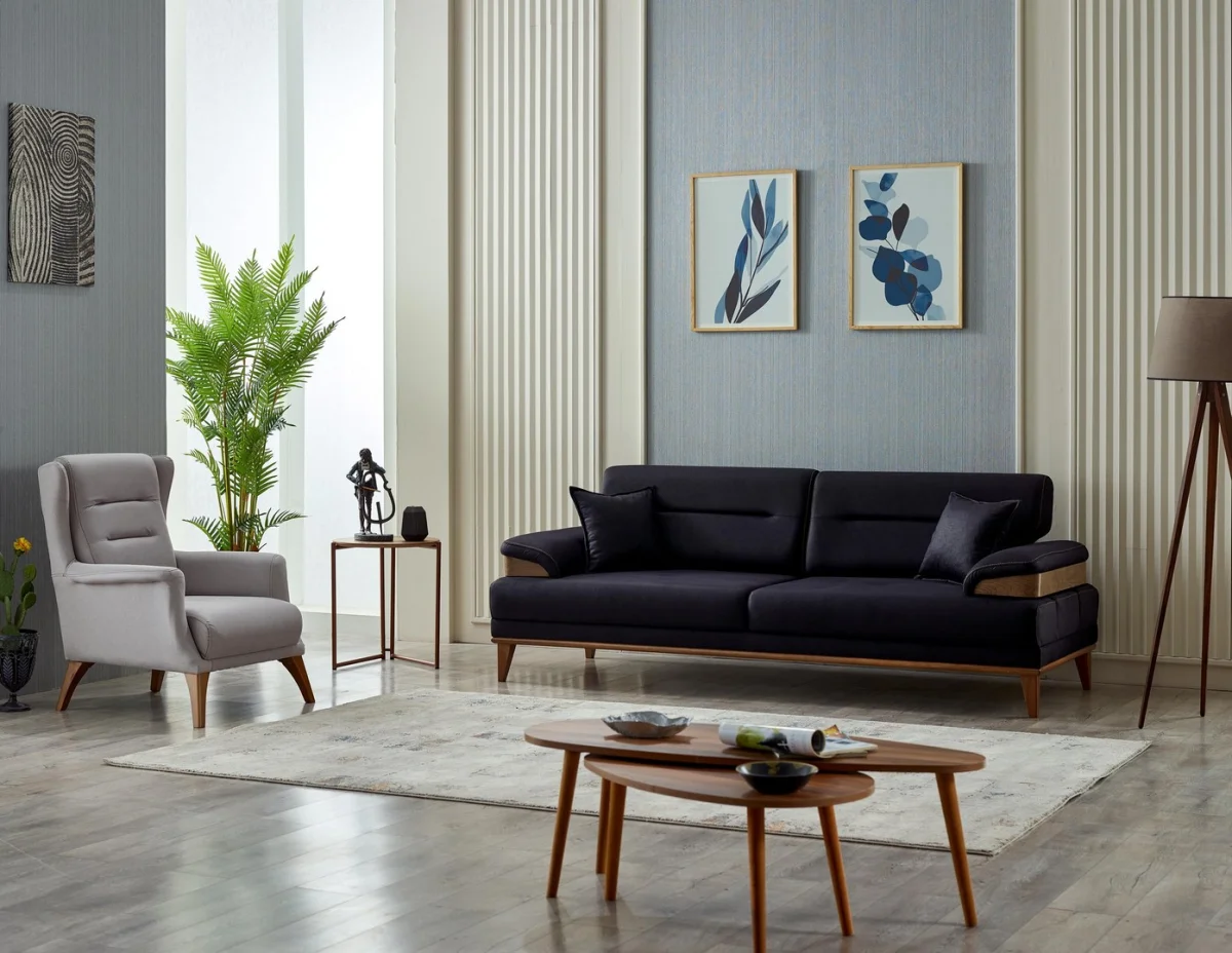 New İnci Koltuk Takımı, modern tasarımı ve ahşap detaylarıyla dikkat çeken şık bir oturma grubudur. Gri ve siyah renk seçenekleriyle her mekana uyum sağlar.