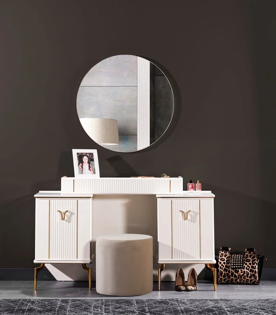 Panora Yatak Odası, çağdaş yaşam tarzlarına uygun olarak tasarlanmış, hem estetik hem de işlevsel özellikleri bir araya getiren kapsamlı bir mobilya takımıdır. Açık tonlarda beyaz ve bej renk uyumu ile oda görünümünü genişleten bu takım, yatak odanızı huzurli bir sığınak haline getirir. Dikkatli işçiliği ve kaliteli malzemesi sayesinde uzun yıllar kullanım imkanı sunar.