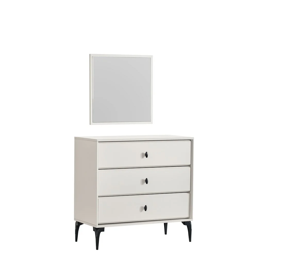 Her parça, gençlerin aktif yaşam tarzına uygun dayanıklı malzemelerden üretilmiştir. Beyaz yüzeyler leke ve çiziklere karşı dirençli özel kaplamaya sahiptir. Siyah metal aksesuarlar ise uzun yıllar boyunca rengini koruyacak şekilde işlenmiştir. Çekmecelerde yumuşak kapanma sistemi bulunur, böylece sessiz ve güvenli kullanım sağlanır.