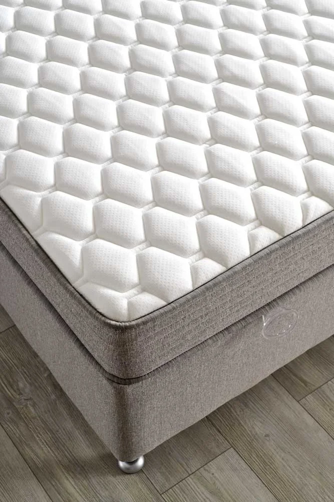 Başlık kısmında kullanılan kapitoneli kumaş kaplama, yatak odasına şık bir görünüm kazandırırken, yatakta okuma veya televizyon izleme gibi aktiviteler için rahat bir dayanak sağlar. Gri renk tonları, her türlü dekorasyon tarzına uyum sağlayarak yatak odanızda zamansız bir zarafet yaratır. Yüksek kaliteli kumaş ve sağlam ahşap çerçeve yapısı ile uzun yıllar kullanım garantisi sunar.