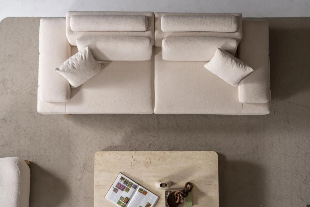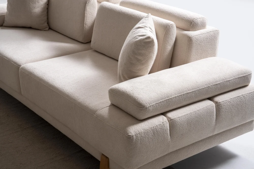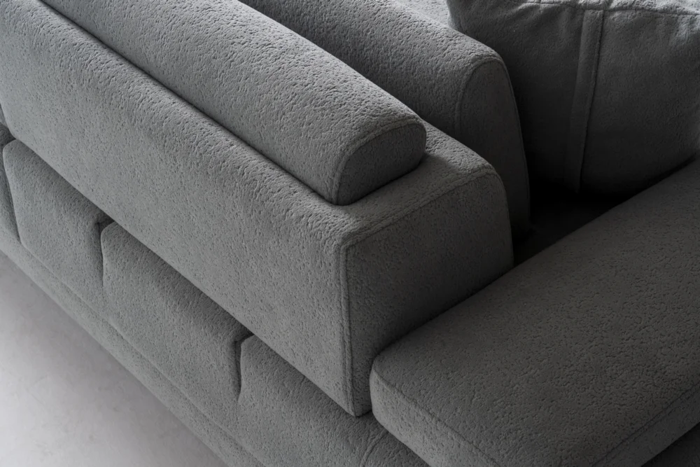Her bir koltuk, insan vücudunun doğal hatlarını destekleyecek şekilde tasarlanmıştır. Sırt ve kol dayama yüzeyleri rahat bir oturuş sağlarken, yastık detayları ekstra konfor sunar. Geniş oturma alanları, uzun süreli kullanımlarda bile rahatlık sağlar. Kumaş kaplama, nefes alabilir özelliğiyle her mevsim rahat kullanım imkanı tanır.
