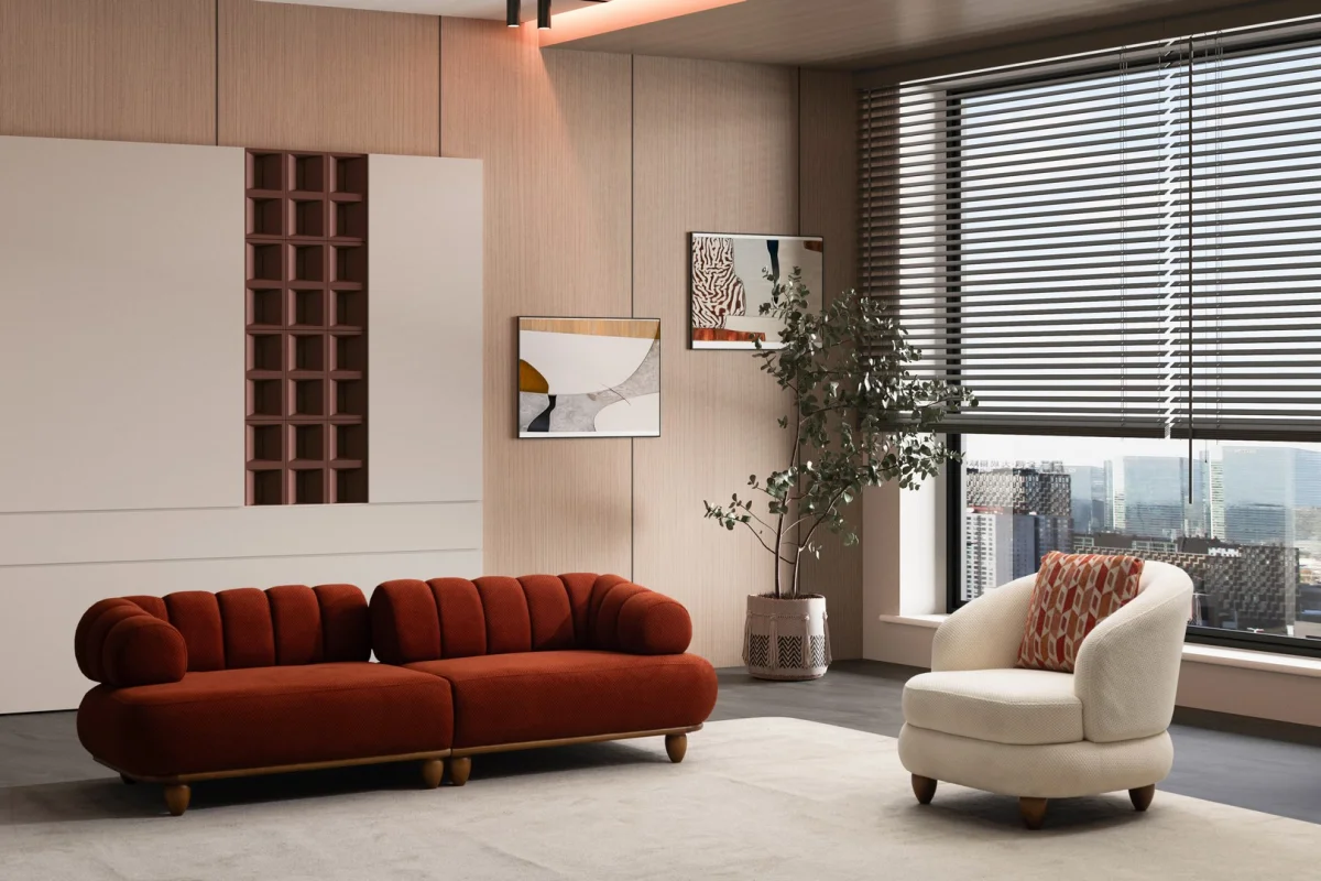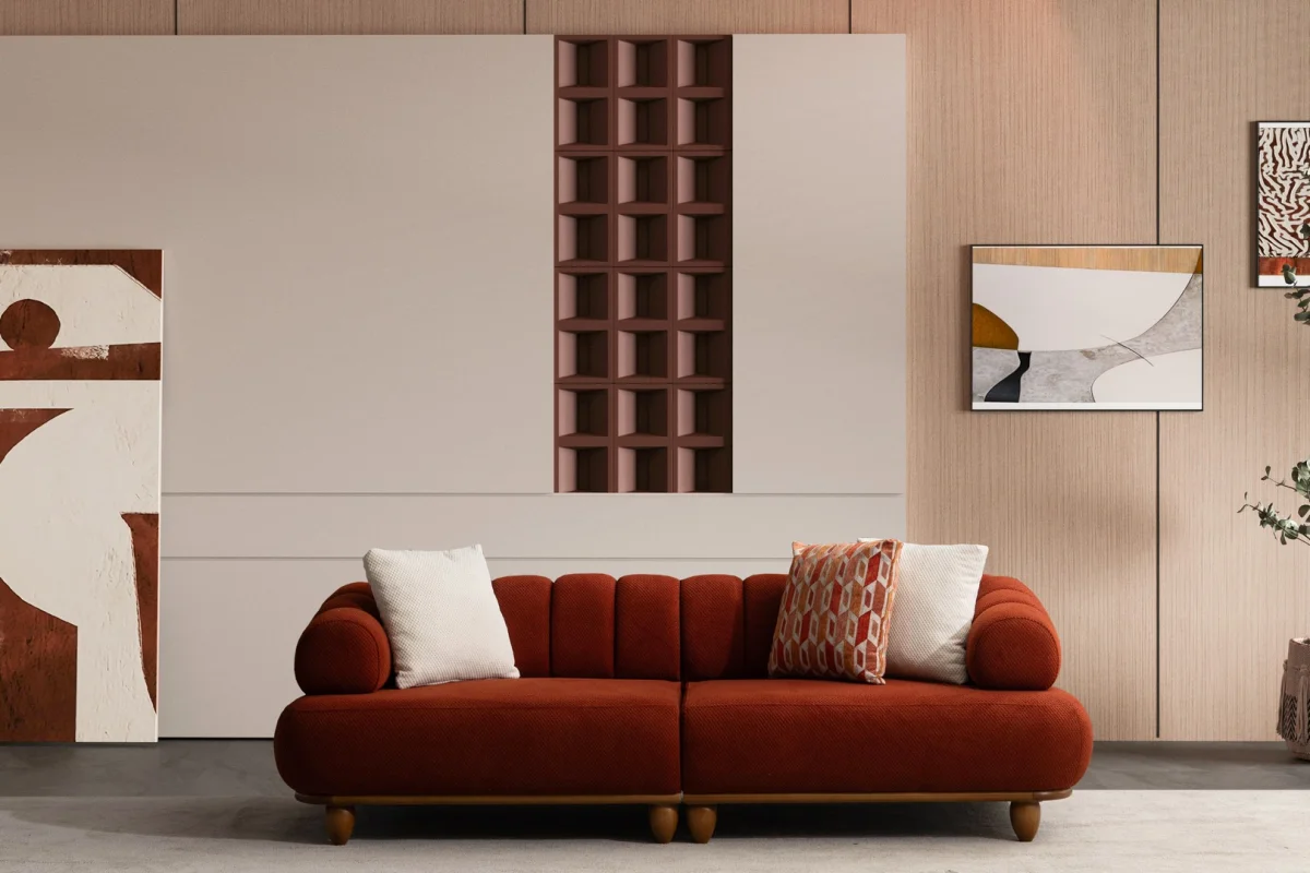 Polo Koltuk Takımı terracotta ve krem renkleriyle yaşam alanlarınıza sıcaklık katar. Yuvarlak hatları ve rahat oturum özellikleriyle konfor sunar.