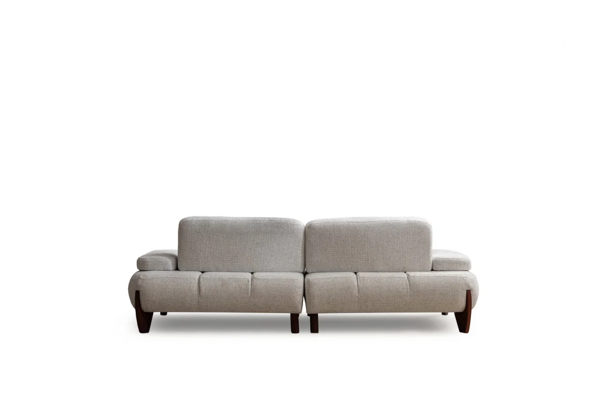 Takımın en dikkat çekici özelliklerinden biri ahşap ayakların sunduğu doğal güzelliktir. Bu ahşap detaylar sadece estetik bir görünüm sağlamakla kalmaz, aynı zamanda uzun yıllar boyunca dayanıklılık garantisi verir. Kumaş kaplama leke direnci yüksek özel dokuma ile üretilmiş olup, temizlik ve bakım açısından oldukça pratiktir. Oturma yüzeyleri yoğun kullanıma rağmen şeklini koruyacak kalitede dolgulu malzeme ile desteklenmiştir.