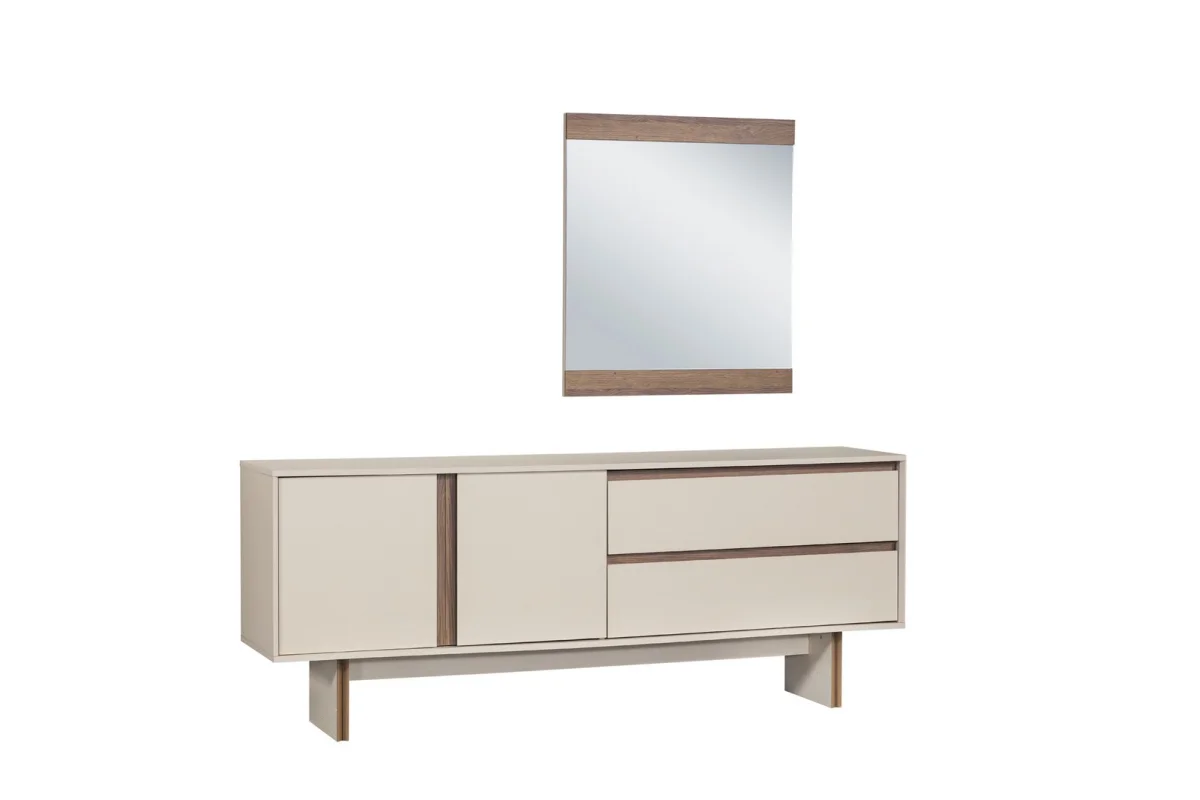 Açık bej ve krem tonlarında tasarlanan takım, hem küçük hem de geniş alanlarda ferahlık hissi yaratır. Nötr renk seçimi sayesinde farklı duvar renkleri ve dekorasyon stillerinize kolayca uyum sağlar. Ahşap detayların sıcaklığı, evinizde samimi bir ortam oluşturur.