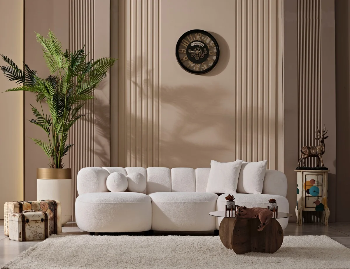 Sara Koltuk Takımı'nın modüler tasarımı, farklı mekan düzenlemelerine uyum sağlama konusunda benzersiz bir esneklik sunuyor. İster açık plan salonlarda köşe takımı olarak ister geniş alanlarda merkezi oturma grubu olarak kullanabilirsiniz. Nötr renk paleti sayesinde her tür dekorasyon stili ile uyumlu olan Sara, rustik tarzdan modern minimalizme kadar geniş bir yelpazede kullanılabilir. Özellikle doğal malzemeler ve yeşil bitkilerle birlikte kullanıldığında yaşam alanınızda huzur verici bir atmosfer yaratır.