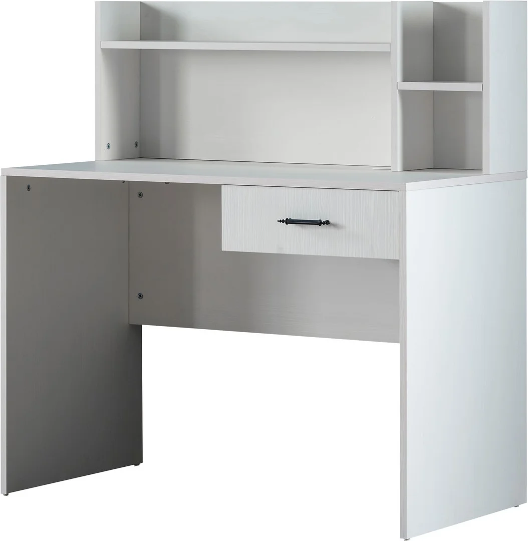 Çalışma masası, hem ders çalışmak hem de bilgisayar kullanımı için ideal boyutlarda tasarlanmıştır. Üzerindeki raflar kitap ve kırtasiye malzemelerinizi düzenli tutmanıza yardımcı olur. Çekmecesi küçük eşyalarınız için ek depolama alanı sağlar. Ergonomik yüksekliği sayesinde uzun süre oturarak çalışabilirsiniz.