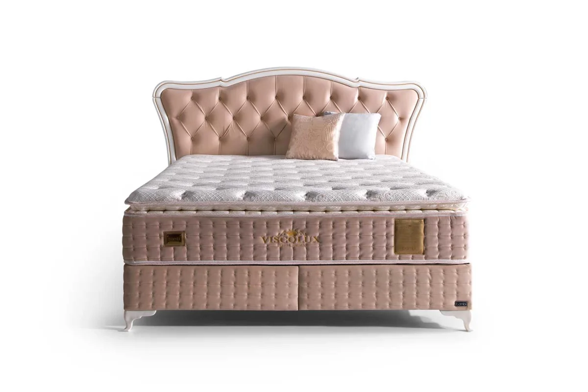 Viscolux Yatak Seti, modern yatak odası tasarımının en şık örneği olarak karşınızda. Pembe tonlarındaki zarif renk paleti ve klasik çizgilerin mükemmel uyumu yatak odanıza hem romantik, hem de lüks bir atmosfer kazandırıyor.
