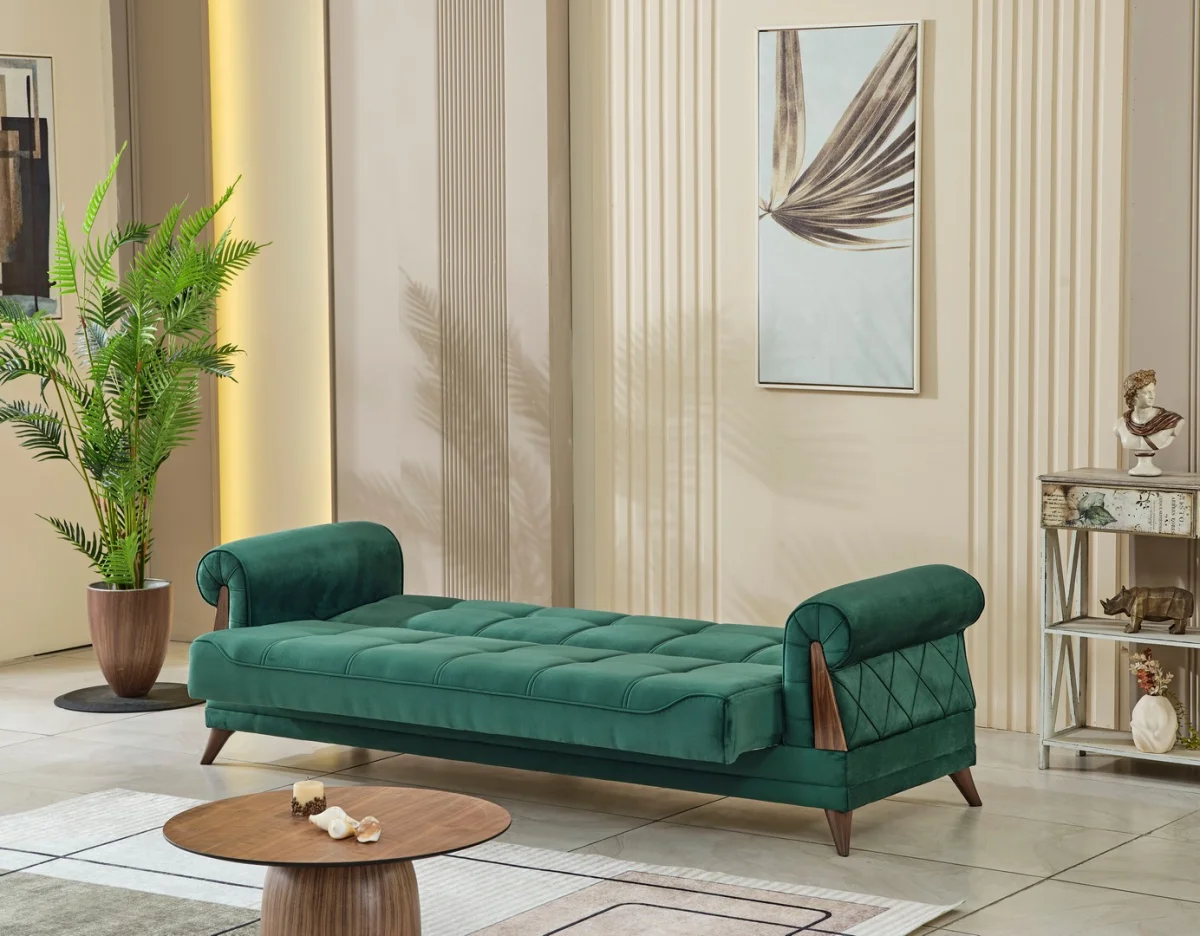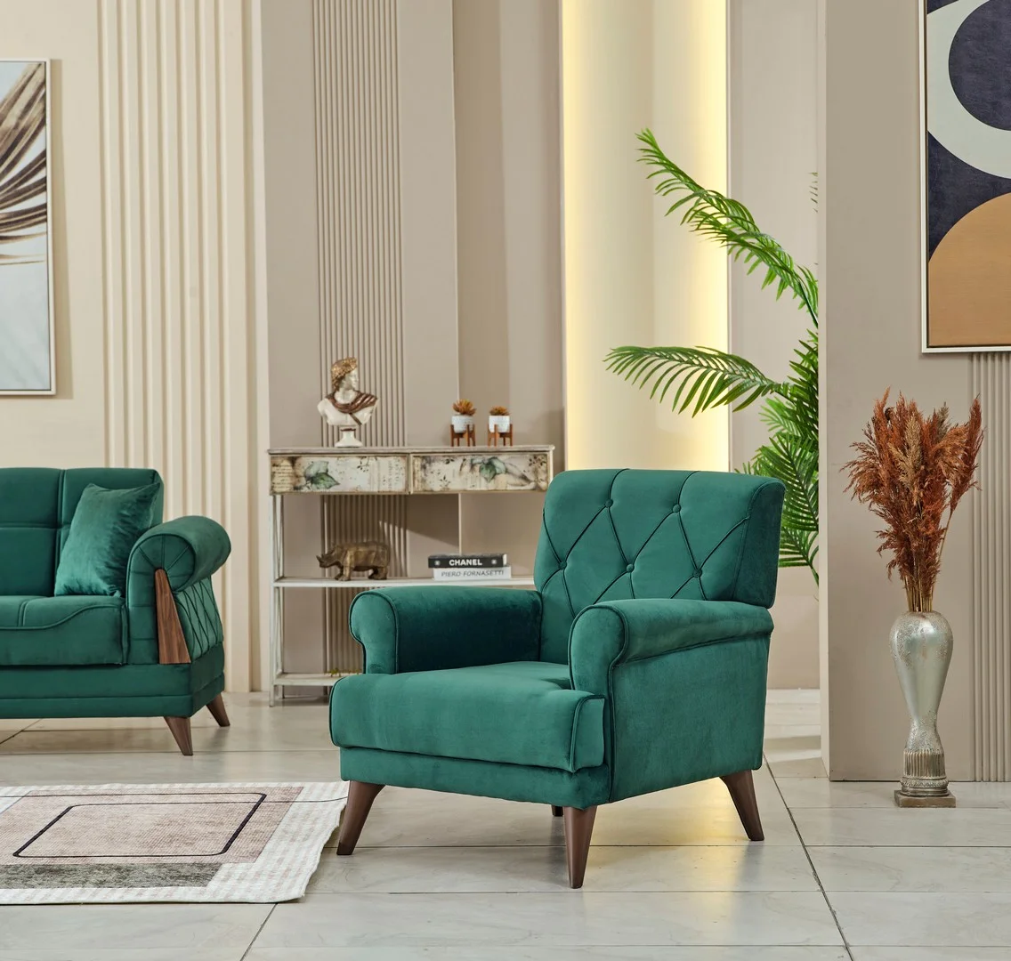 Zambak Koltuk Takımı, premium kalite kumaş ile kaplanmış olup, dayanıklılık ve estetik açıdan mükemmel bir denge sunar. Kapitoneli tasarımı ile klasik zarafetin modern yorumunu yapan bu takım, her detayında titizlikle seçilmiş malzemeler kullanır. Solid ahşap ayakları ve güçlü iç yapısı sayesinde uzun yıllar kullanım garantisi verir. Yüksek yoğunluklu süngerleri ile anatomik oturma konforu sağlar ve vücut hatlarına mükemmel uyum gösterir.